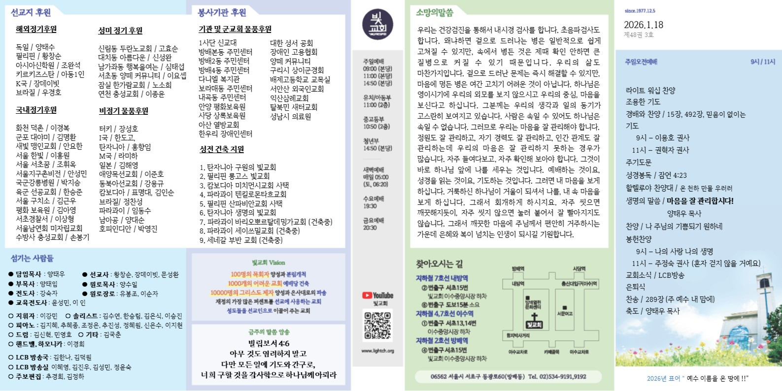 2026년 1월4일 교회 주보
