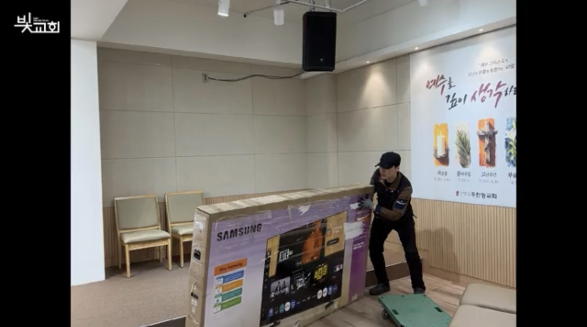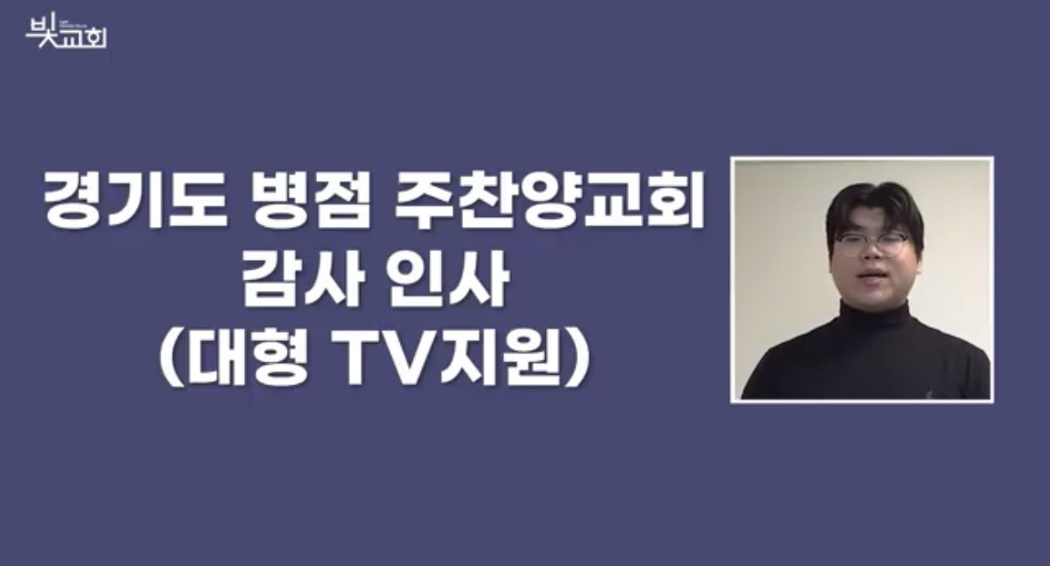 경기도 병점 주찬양교회에서 대형 TV지원에 감사 인사를 보내오셨습니다.