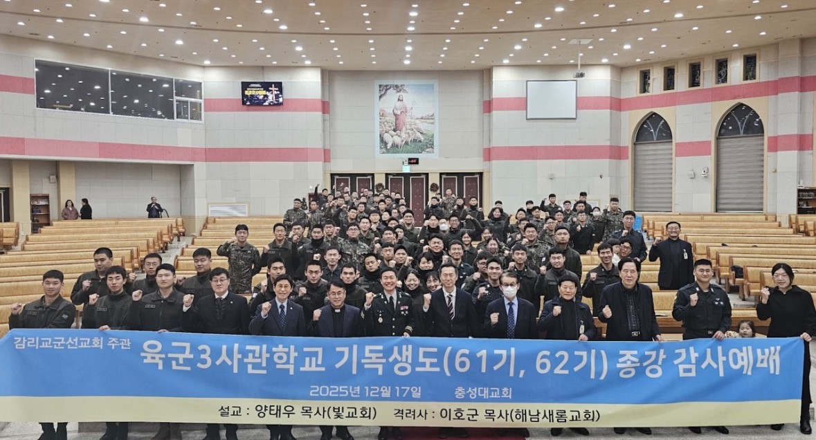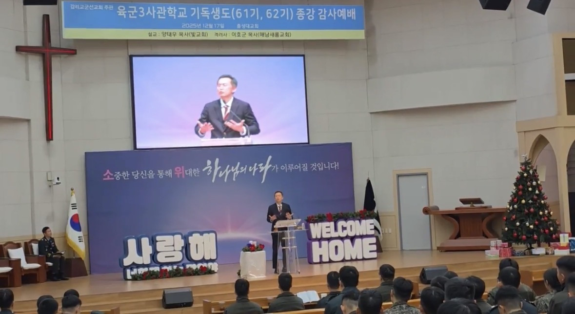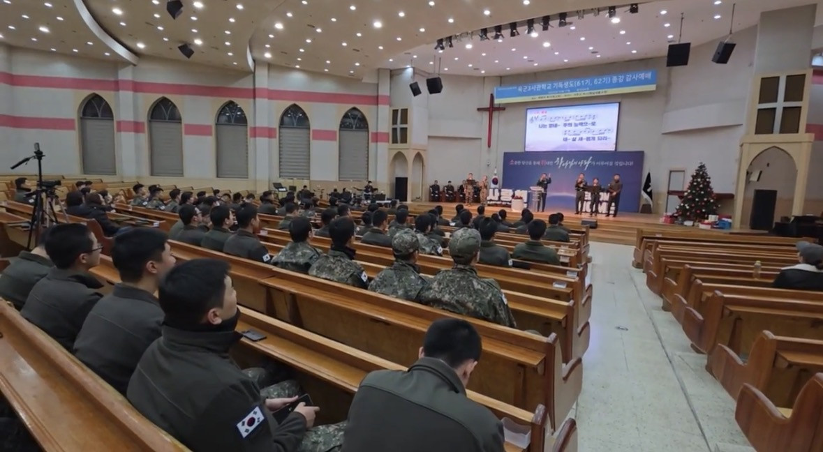 육군3군사관학교 기독학생회 종강 예배에 담임목사님과 군선교부장님 방문하셔서 설교를 전해주셨습니다.