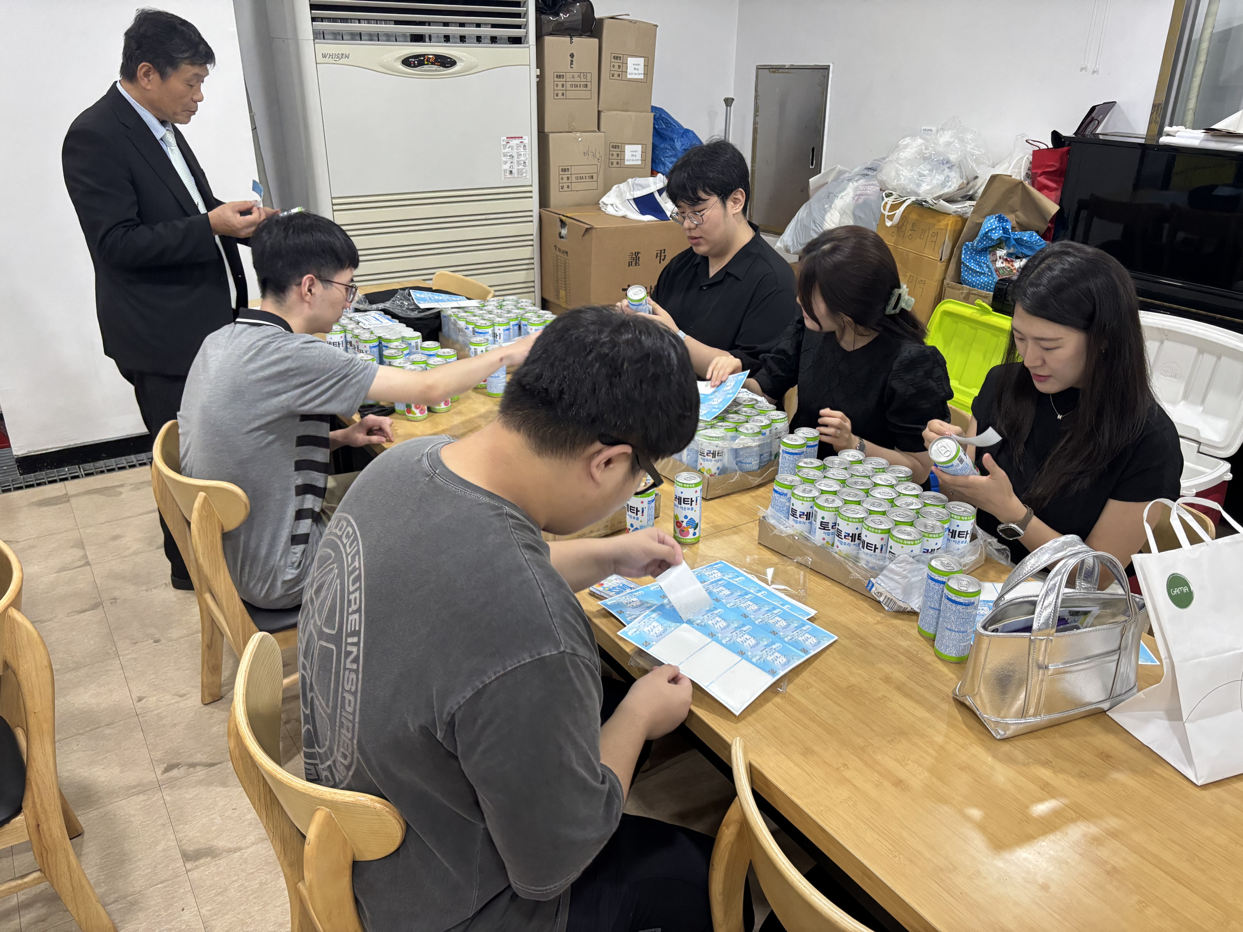 무더운 여름, 청년들은 시원한 토레타 캔 음료에 직접 디자인한 전도지 스티커를 붙여 준비했습니다.