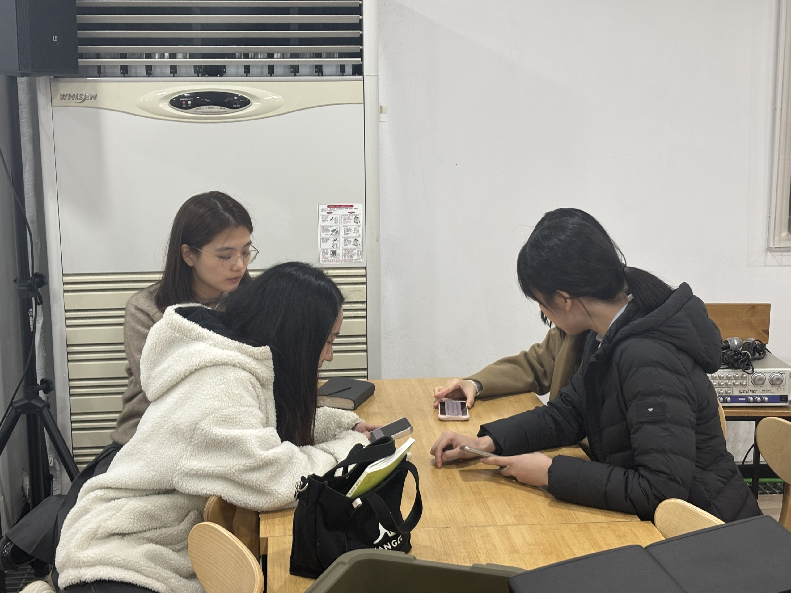 파트별 연습 후 다 같이 모여 찬양을 맞춰보는 시간을 가졌습니다. 짧은 시간이었지만, 청년들의 열정과 하나 된 마음 덕분에 찬양이 놀랍도록 아름답게 맞춰졌습니다.