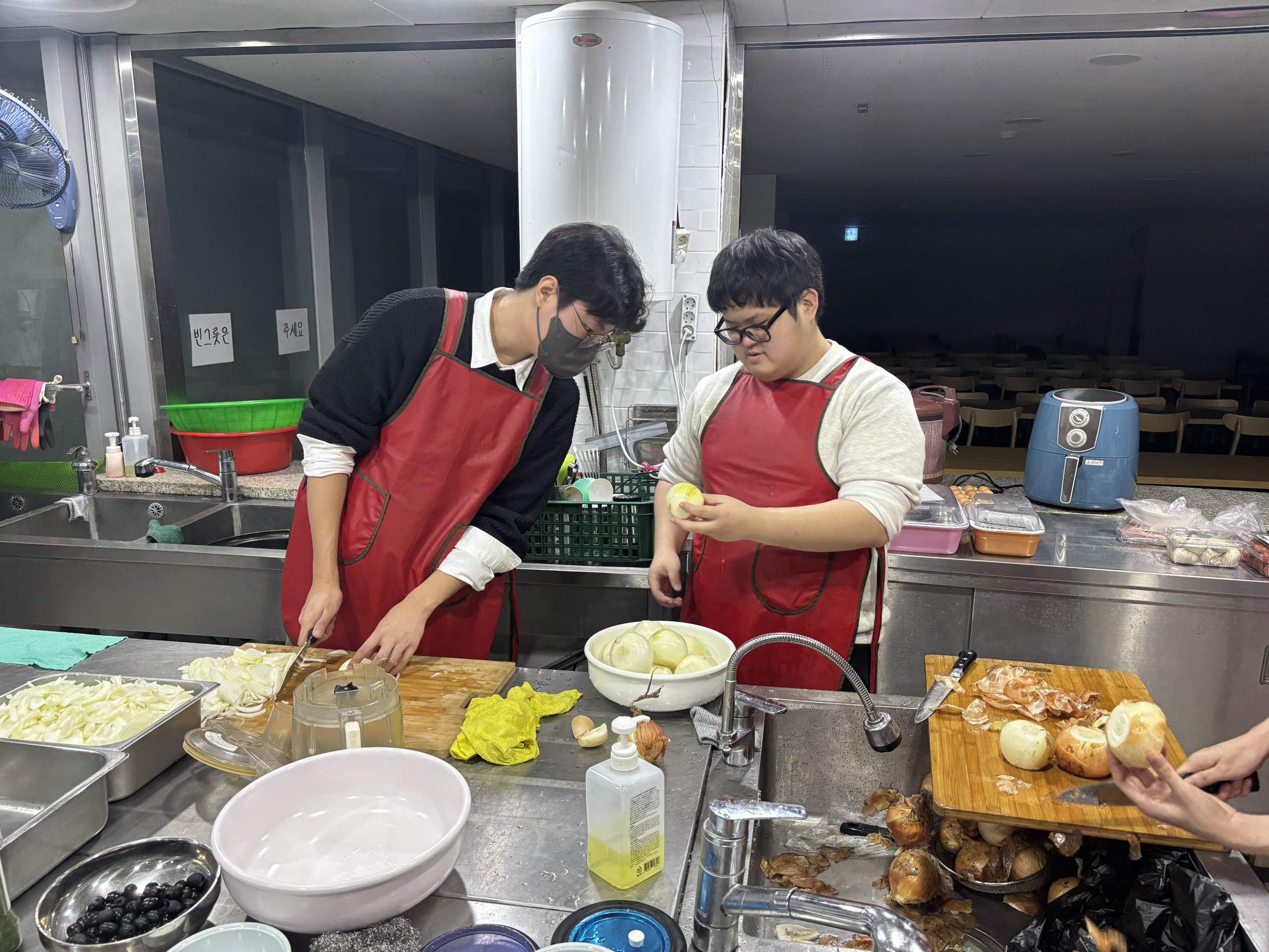 이번 전야제에서는 교역자들과 청년들이 협력하여 파스타와 치킨을 직접 요리해 성도님들께 대접했습니다. 특히 평소 교회의 손과 발이 되어 묵묵히 섬겨주시는 어른들을 비롯해 온 가족이 한자리에 모여 예수님의 사랑을 나누며 따뜻한 식사를 즐겼습니다. 성도님들을 섬기며 기쁨을 나눌 수 있어 더욱 감사하고 행복한 시간이었습니다.