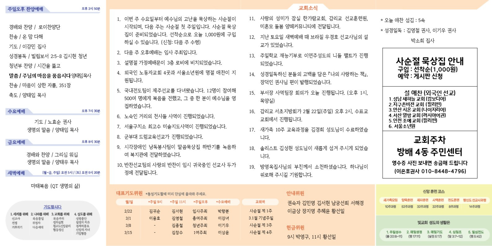 2026년 2월15일 교회 주보